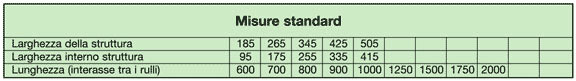 Per misure differenti da quelle standard consultare il ns. ufficio tecnico