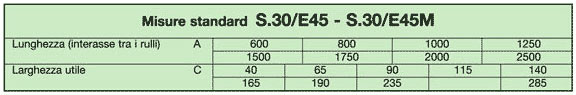 Trasportatori con tenditore lato motorizzazioneDati Tecnici