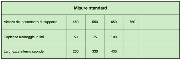 - Con piantana alta 550, a 0° la bocca di scarico e' ad altezza 330. A 30° la bocca di scarico e' ad altezza di 660.