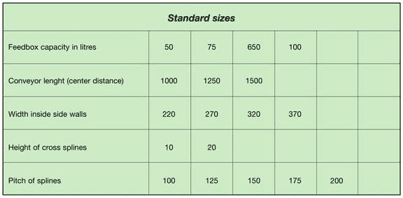 - Discharge throat inclination adjustable so that sloping on discharge floor is min. 34° max. 66°.