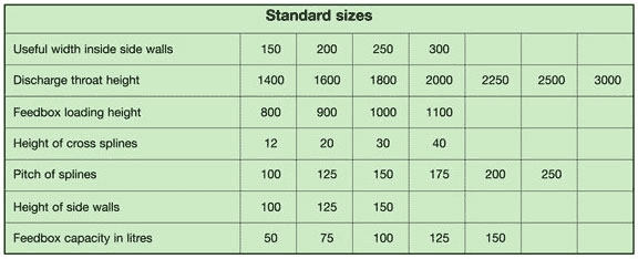 - Side walls, feedbox and discharge throat covering in plastic material.