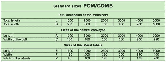 - Possibility to have the central conveyor and the lateral tebles with transversal free spaces for inserction of standstill.