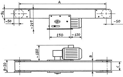 - Dragging group and lower tensioning device with possibility of longitudinal displacement.