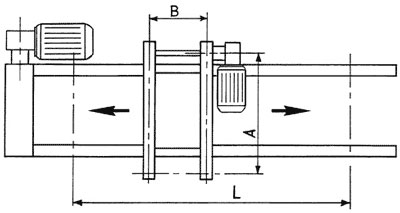 - Longitudinal conv.: gear reducer type I50 20/1; motor 0,37Kw.
