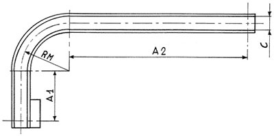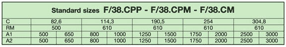 Legend: C Width of the plaques - RM Middle ray - A1 Length of the flat distance (tightener side) - A2 Length of the flat distance (motor side)